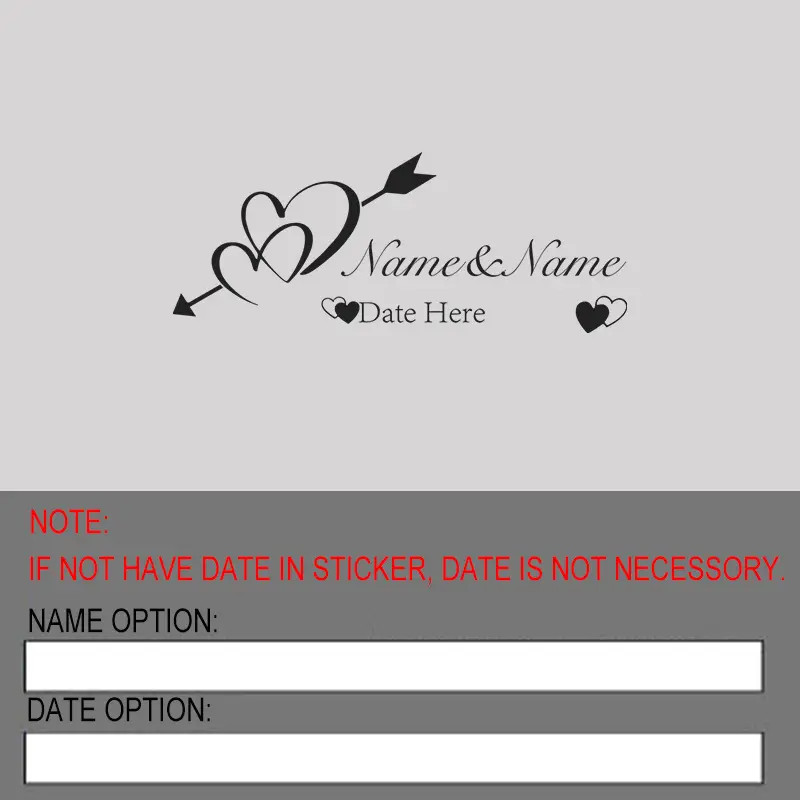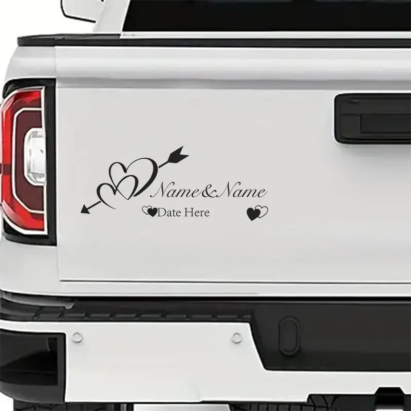 Adesivos Personalizados para Recepção de Casamento - Decalques de Vinil com Nome e Data para Acessórios Externos de Carro